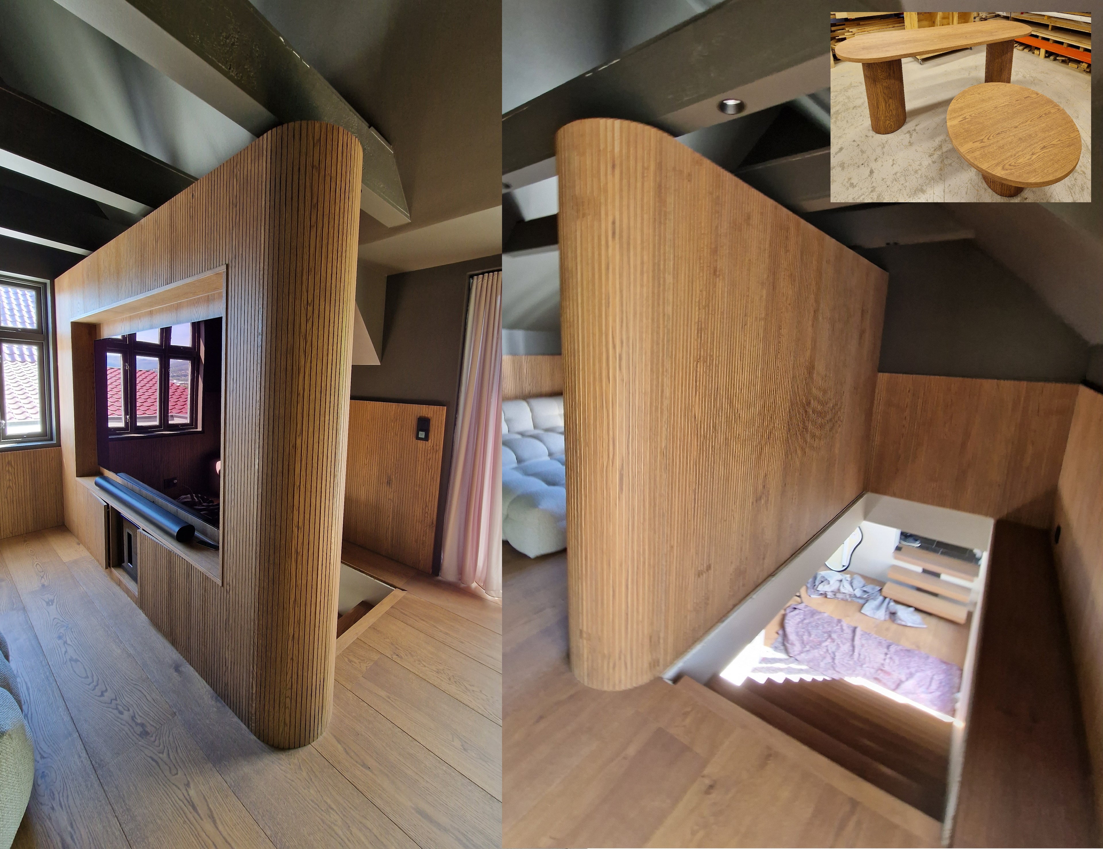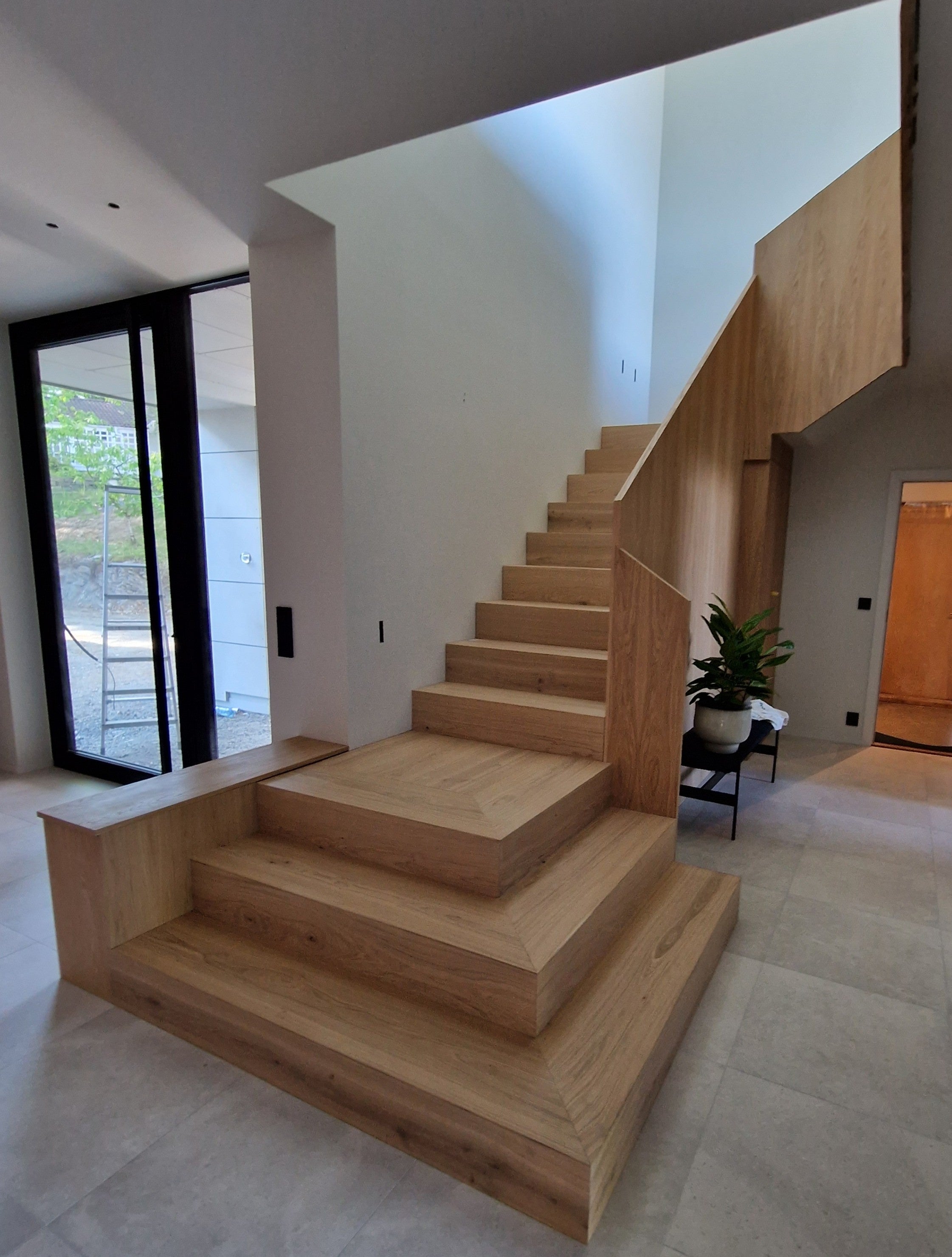 Vi lytter ivrig til dine behov, gir deg en gratis befaring og tilbud, designer og tegner, planlegger alle operasjoner, produserer (i verksted eller lager hos deg), leverer og installerer: gulv, trapper, veggpaneler, dør, etc.